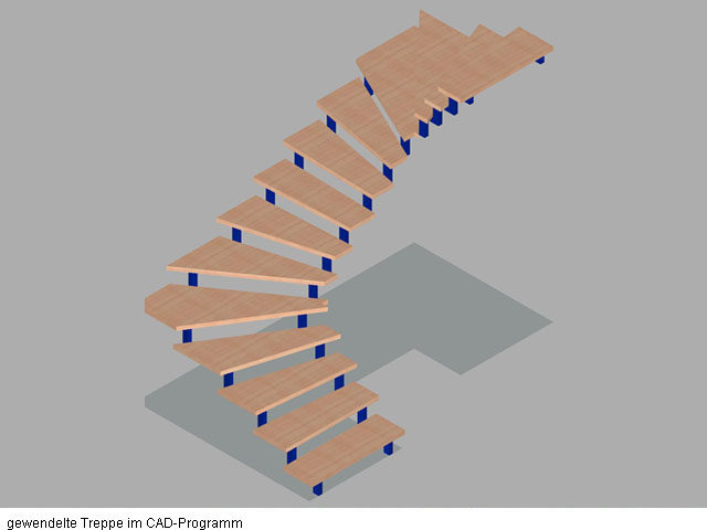 Für eine unserer besonderen Leistungen, den Treppenbau, verfügen wir über spezielle CAD-Module, mit denen sich selbst knifflige Projekte wie Wendeltreppen normengerecht hinsichtlich z.B. "Auftrittsfläche" auslegen lassen.