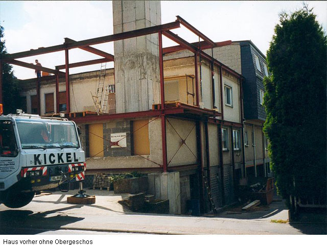 Als Beispiel sei der komplette Überbau eines älteren Bauwerkes genannt, dessen oberer Abschluss und Seitenwände ohne Ringanker als nicht-tragend betitelt waren. Wir haben dem Gebäude durch eine geschickte Stahlträgerkonstruktion zu seinen neuen Obergeschossen verholfen.